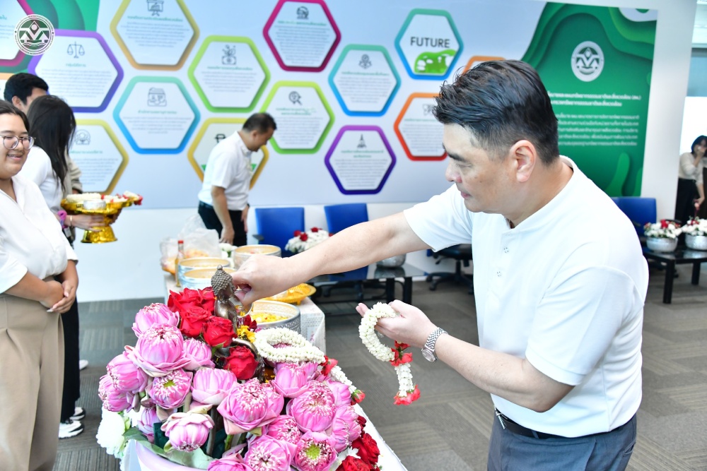 สผ. จัดพิธีสรงน้ำพระ และรดน้ำขอพรผู้บริหาร สืบสานประเพณีสงกรานต์