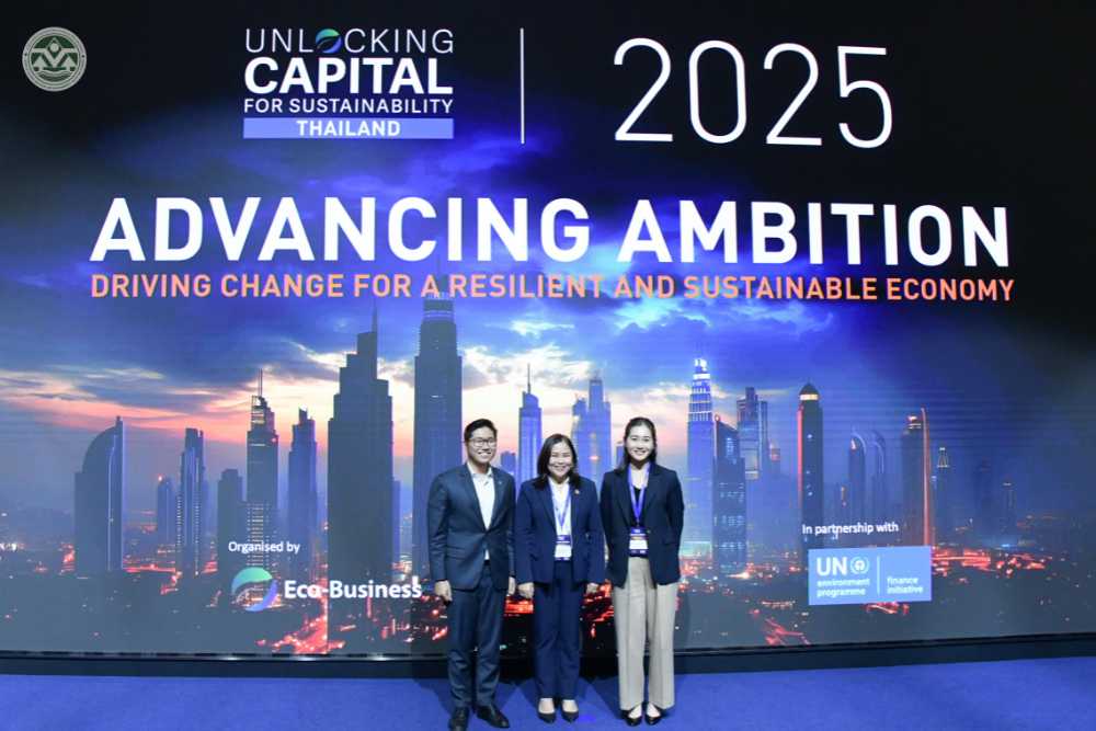 นางสาวกานดา ชูแก้ว รองเลขาธิการสำนักงานนโยบายและแผนทรัพยากรธรรมชาติและสิ่งแวดล้อม (สผ.) ได้ขึ้นกล่าวปาฐกถาแสดงวิสัยทัศน์การขับเคลื่อนความยั่งยืนของประเทศไทย ในงาน Unlocking Capital for Sustainability – Thailand จัดขึ้นภายใต้หัวข้อหลัก “Advancing Ambition: Driving Change for a Resilient and Sustainable Economy” โดยความร่วมมือระหว่าง United Nations Environment Programme Finance Initiative (UNEP FI) และ Eco-Business เมื่อวันที่ 30 กันยายน 2568 ณ อาคาร UOB Plaza การประชุมครั้งนี้ มีผู้แทนจากภาครัฐ ภาคธุรกิจ ภาคการเงิน ภาควิชาการ และภาคประชาสังคม