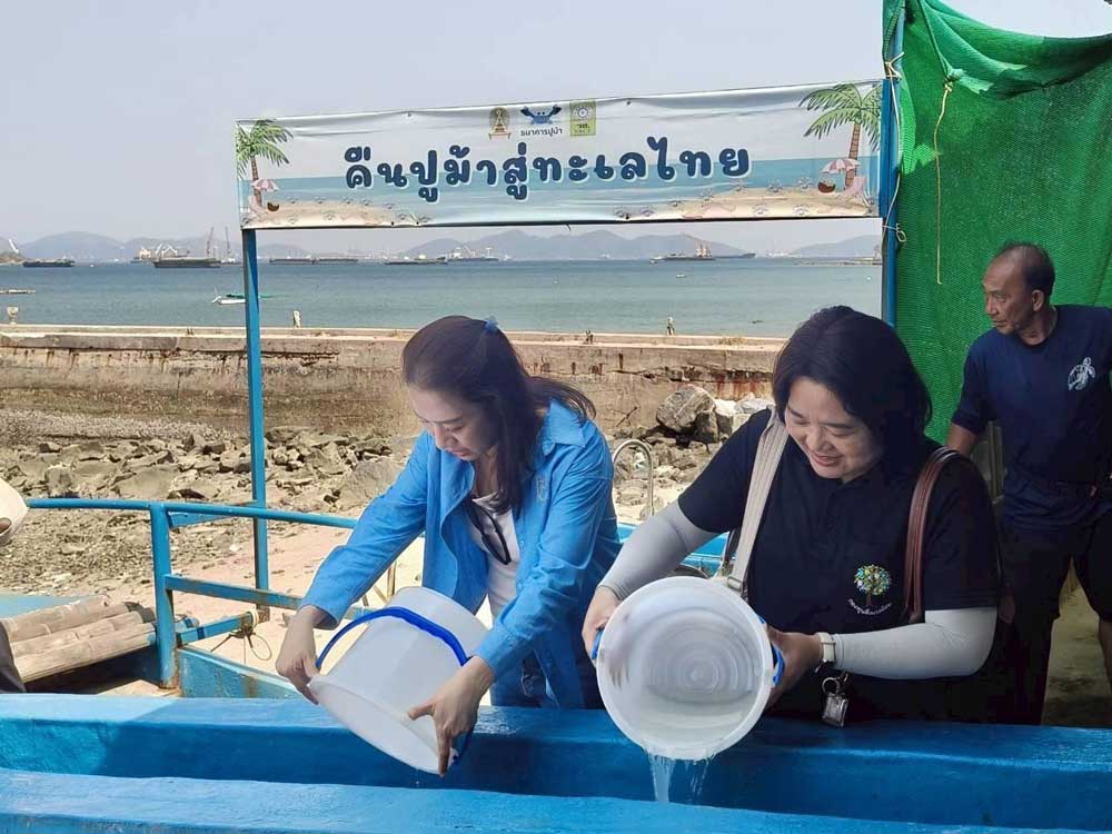 เมื่อวันที่ 26 มีนาคม 2569 นางสาวนารีรัตน์ พันธุ์มณี รองเลขาธิการสำนักงานนโยบายและแผนทรัพยากรธรรมชาติและสิ่งแวดล้อม พร้อมด้วยเจ้าหน้าที่กองบริหารกองทุนสิ่งแวดล้อม ร่วมลงพื้นที่ติดตามความก้าวหน้าโครงการการฟื้นฟูทรัพยากรและระบบนิเวศทางทะเลและชายฝั่งเพื่อการใช้ประโยชน์ อย่างยั่งยืน อำเภอเกาะสีชัง จังหวัดชลบุรี ดำเนินการโดย จุฬาลงกรณ์มหาวิทยาลัย ที่ได้รับการสนับสนุนงบประมาณจากกองทุนสิ่งแวดล้อม โดยมี ผศ.ดร.นิลนาจ ชัยธนาวิสุทธิ์ หัวหน้าโครงการฯ และคณะเจ้าหน้าที่นำเสนอภาพรวมการดำเนินงานด้านการอนุรักษ์ ฟื้นฟู และใช้ประโยชน์จากทรัพยากรธรรมชาติทางทะเล และชายฝั่ง การใช้ประโยชน์ขยะเปลือกหอยและการใช้วัสดุทดแทนพลาสติกหรือพีวีซีในการผลิตหินเทียม สำหรับการขยายพันธุ์ปะการังอ่อน กัลปังหา และฟองน้ำทะเล จากนั้นได้ร่วมทำกิจกรรมการฟื้นฟูทรัพยากร และระบบนิเวศชายฝั่ง ประกอบด้วย การปล่อยลูกปูม้าแรกฟัก แม่ปูม้า ลูกหมึกระยะแรกฟัก และลูกฉลามกบ ลงสู่ทะเล รวมถึงการขยายพันธุ์กล้าปะการังอ่อนหนังดอกเห็ด ณ ศูนย์เรียนรู้ธนาคารสัตว์ทะเลเกาะสีชัง โดยชุมชนเพื่อชุมชนยั่งยืน ในพระราชูปถัมภ์สมเด็จพระกนิษฐาธิราชเจ้า กรมสมเด็จพระเทพรัตนราชสุดาสยามบรมราชกุมารี
